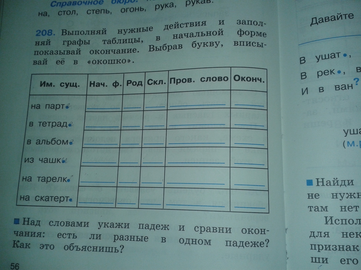 на парте нач форм парта род женский 1скланение пров слов парточка окон е