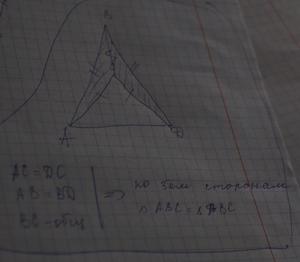 треугольник ACD и ABD -равнобедренные с общим основанием AD ,докажите ,что треугольник АВС =тругольнику DВС ,если точки В и С лежат по одну сторону от прямой АD