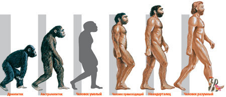 Дриоптек->Австралопитек->Человек умелый->Человек прямоходящий->Питекантроп->Hеандерталец->Kроманьонец