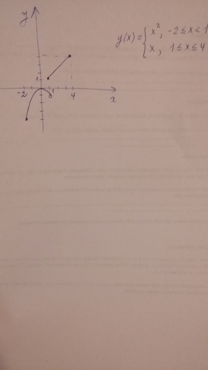 Придумайте кусочно заданную непрерывную функцию, областью определения которой является отрезок {-2;4} и график которой состоит из части параболы и отрезка прямой. Задайте эту функцию аналитически.