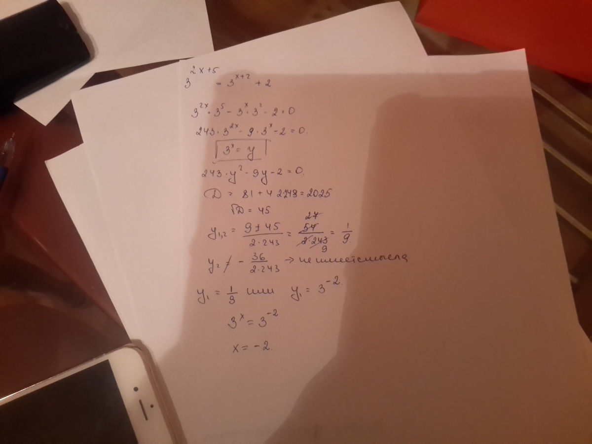 реши квадратное уравнение 32y^2-9y-2=0, а потом подставь значения корня положительного в это уравнение 3^x=t и найди ответ