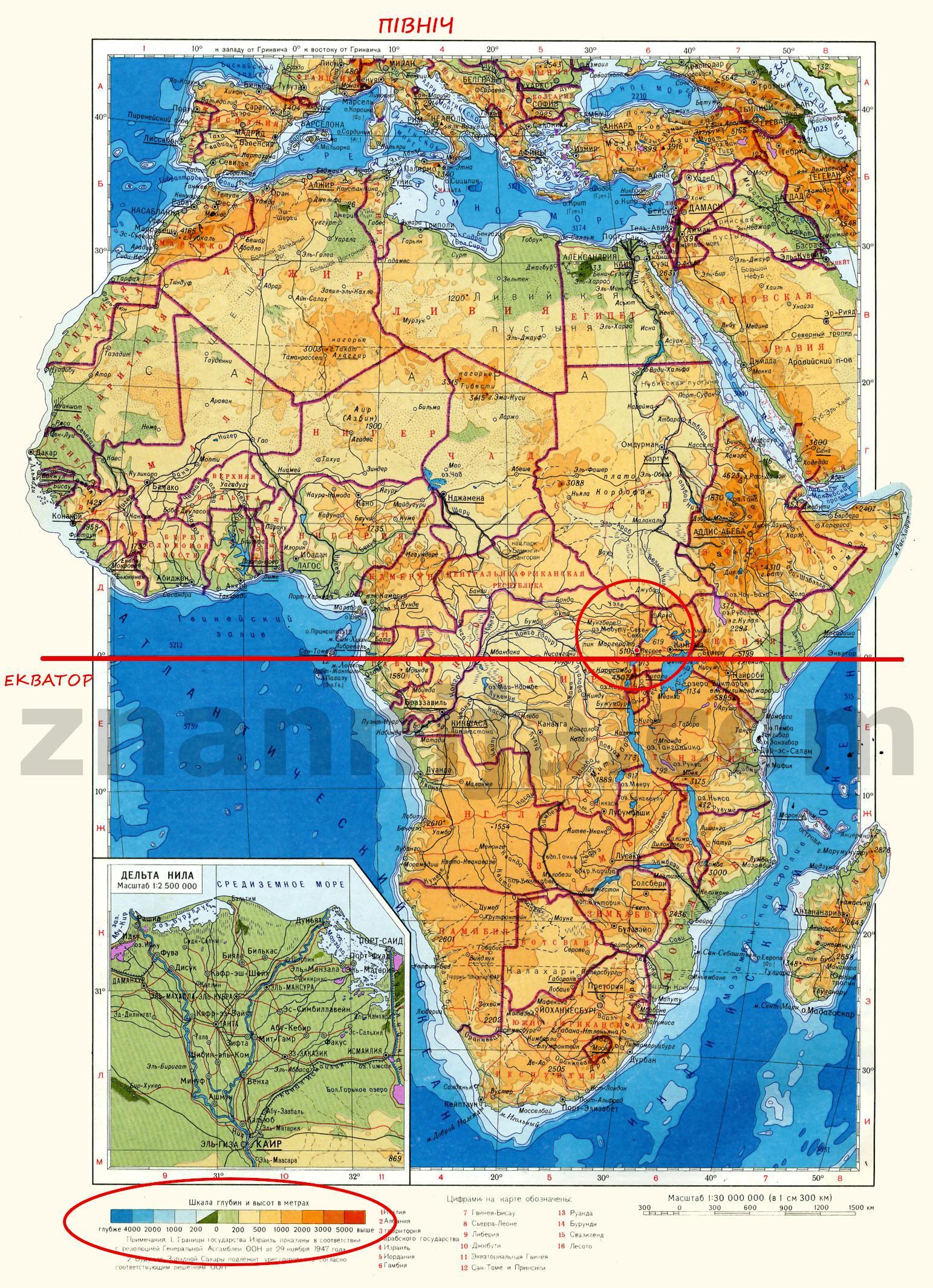 До відповіді прикріплено фізичну карту, яка допоможе вам зорієнтуватися щодо рельєфу. На ній я підписала екватор та північ, позначила найвищу точку північної півкулі Африки.
