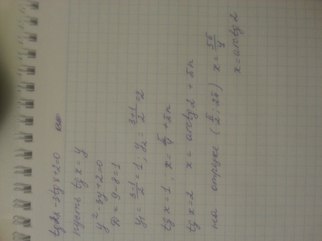 ) Решите уравнение tg^2x-3tgx+2=0
