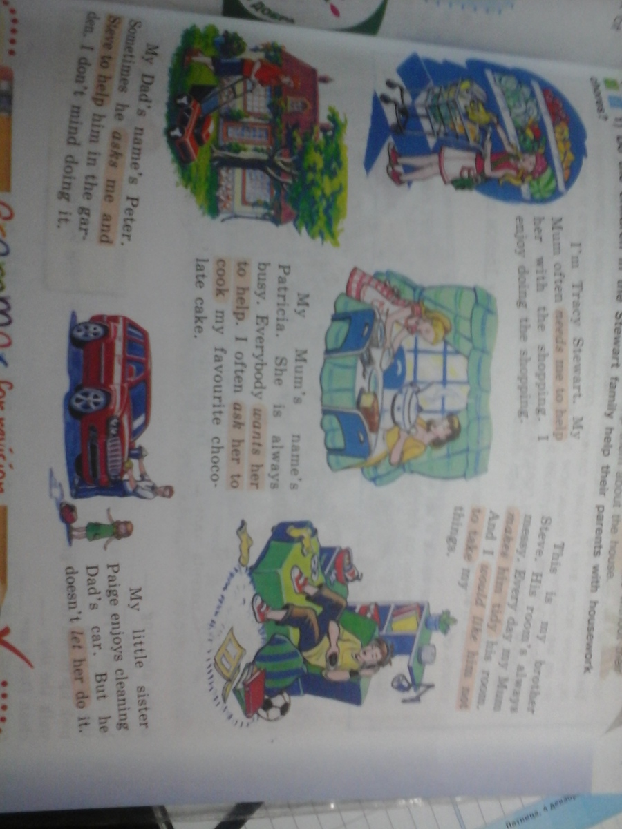 имя моей мамы Патрика. Она всегда спешит. Многие хотят помочь ей. Я часто прошу её приготовить мой любимый шоколадный торт.