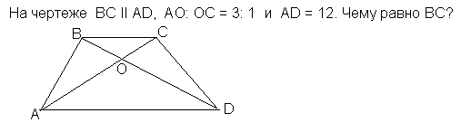На чертеже BC||AD, AO:OC=3:1, AD=12. Чему равно BC?