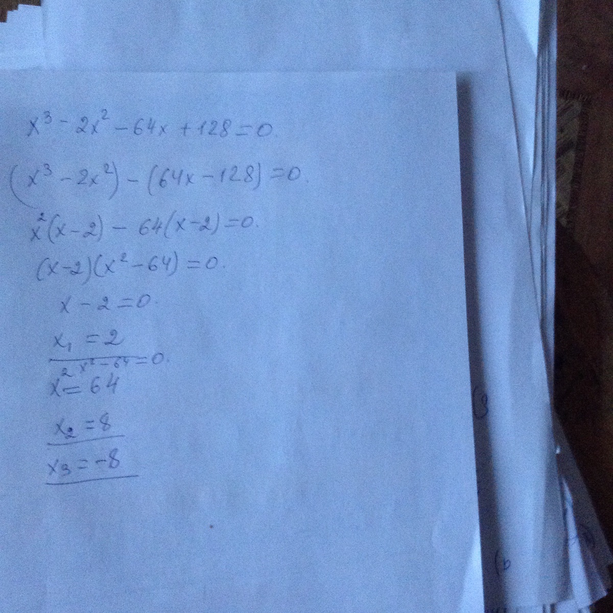 Помогите пожалуйста с уравнением! х^3 - 2х^2 - 64х + 128 = 0 Хотя бы просто, как это решать?
