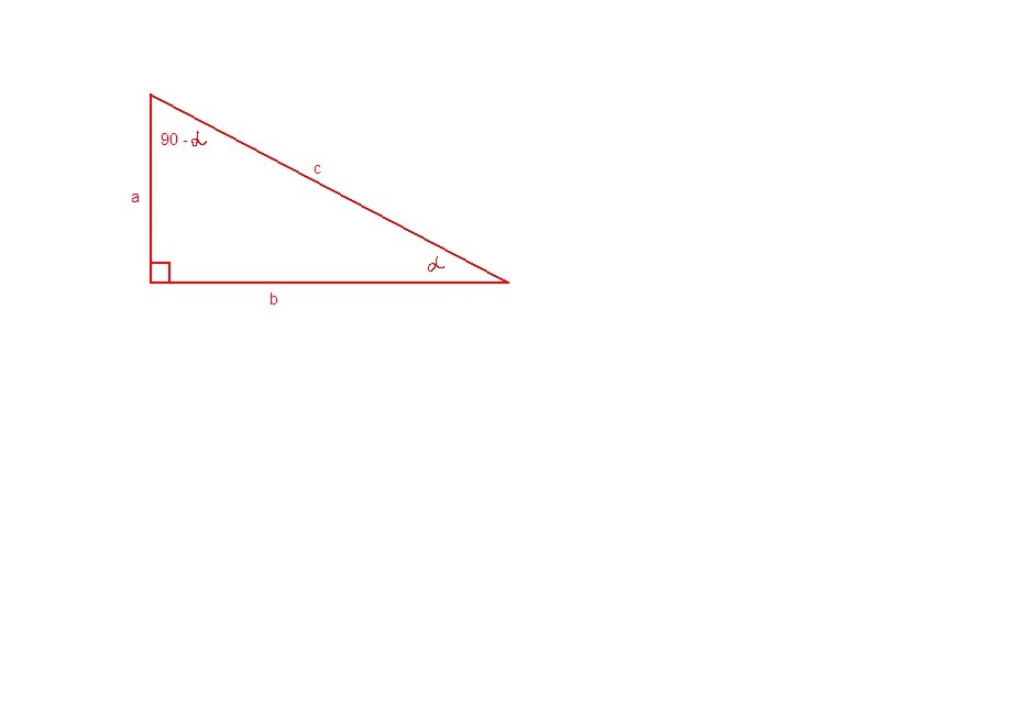 tg(90° - α) = b/a = ctgα
