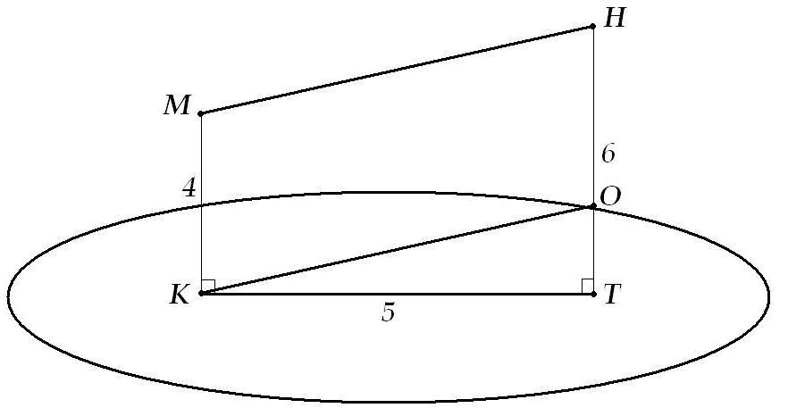 через концы отрезка MH проведены прямые ,перпендикулярные некоторой плоскости и пересекающие ее в точках K и Tсоответственно .Найдите MН , если KT=5cm