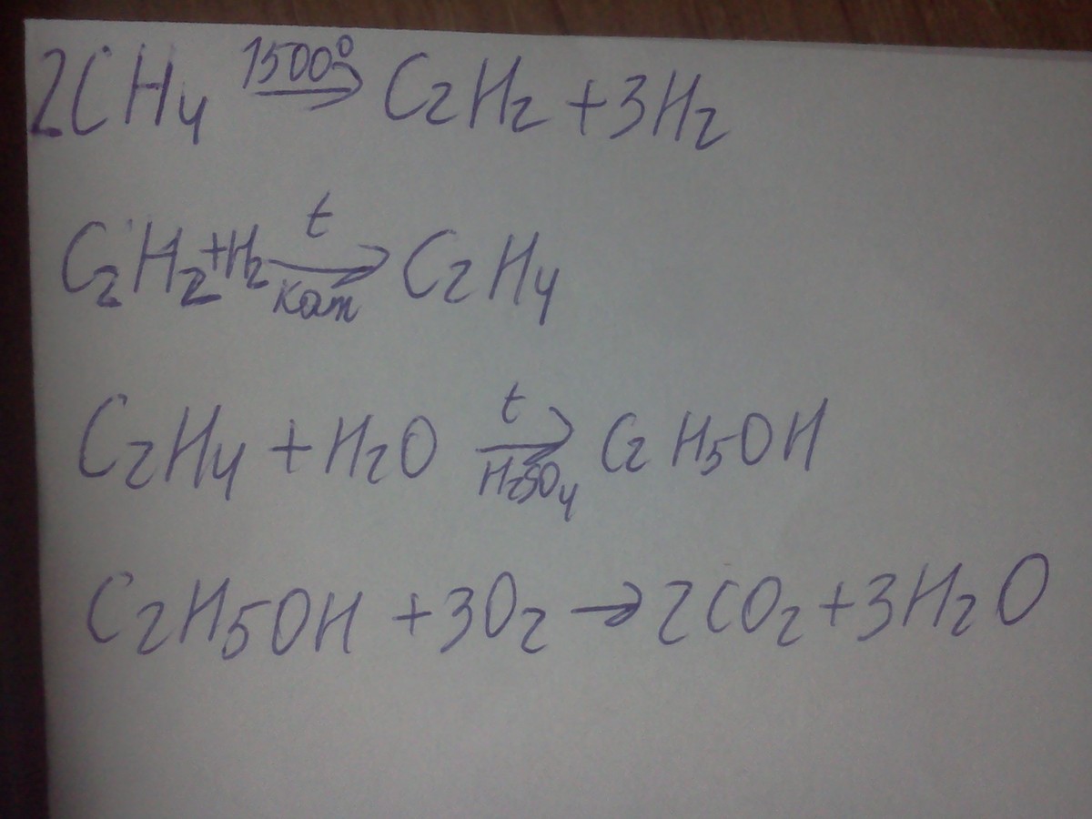 здійснити перетворення.CH4-C2H2-C2H4-C2H5OH-CO2