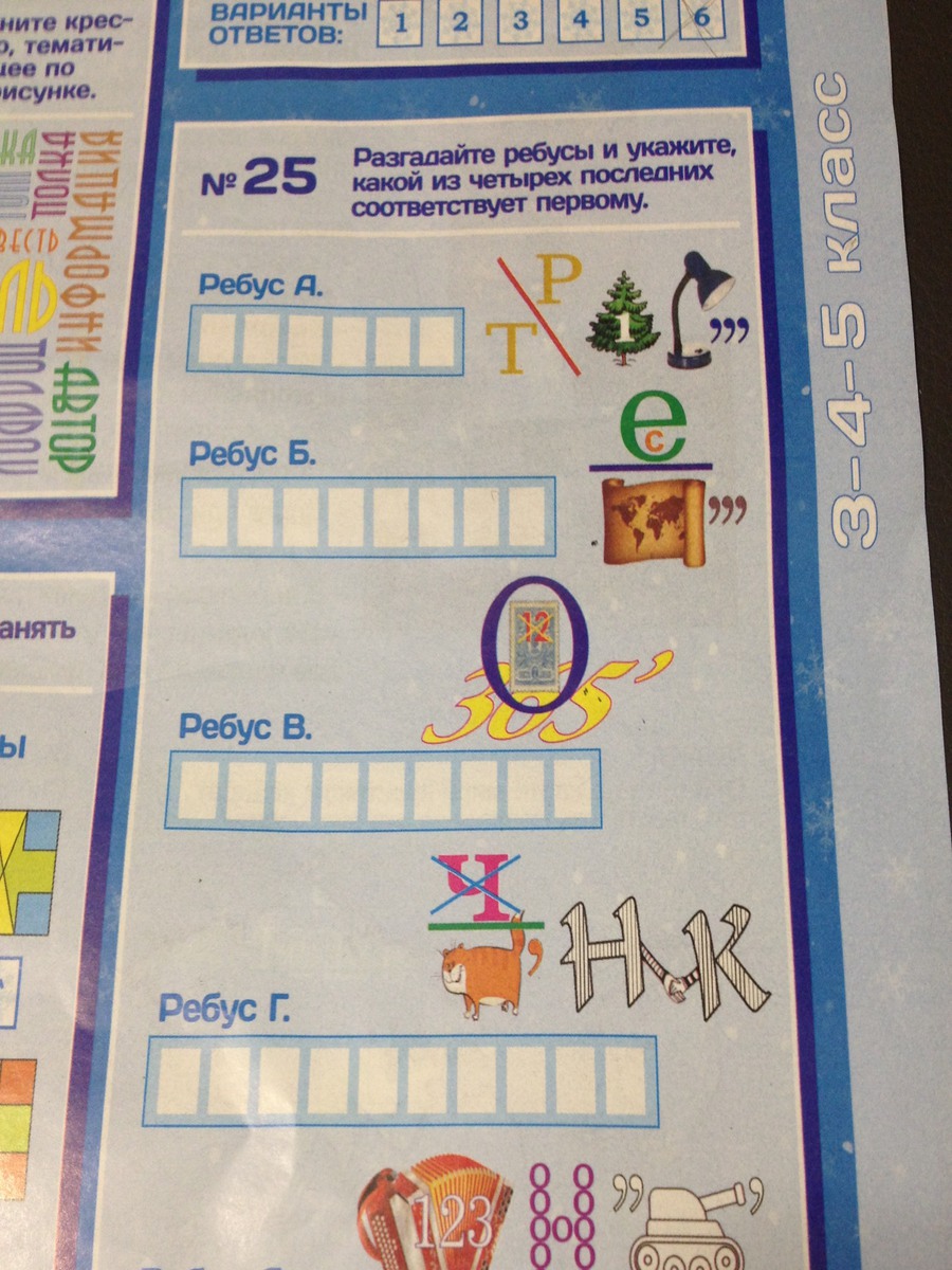 Разгадайте ребусы и укажите какой из четырех последних соответствует первому.