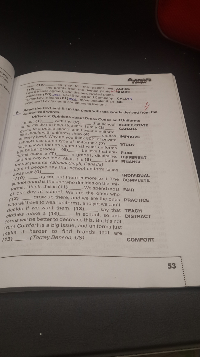 read the text and fill in the gaps with the worlds derived from the capitalized words