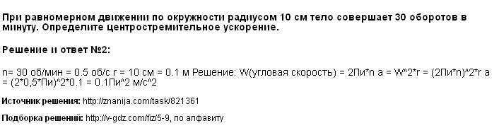 Каково центростремительное ускорение тела при его равномерном движении по окружности радиусом 10 см если при этом Тело совершает 30 оборотов в минуту