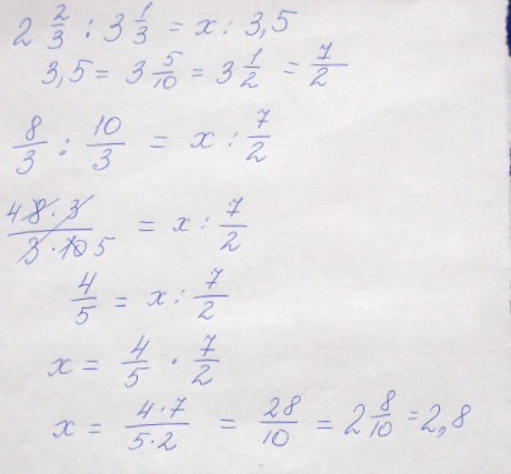 найди известный член пропорции 2 23 : 3 13 =х: 3,5
