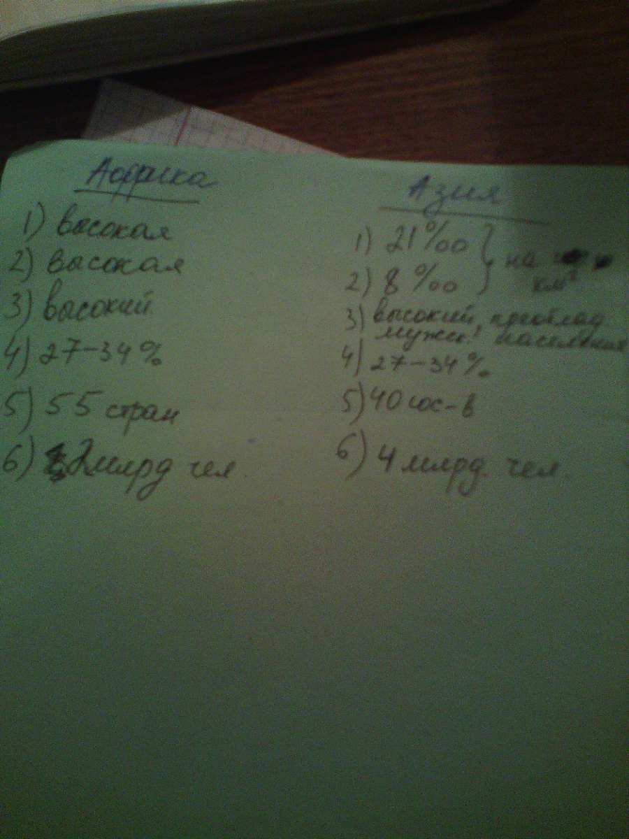 Сравнить Африку и Азию по таким критериям: