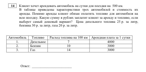 Для начала рассчитаем сколько клиент израсходует топлива л для поездки на 500 км для каждого автомобиля: