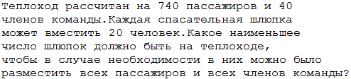 Ответ: 39 шлюпок должно быть на теплоходе.