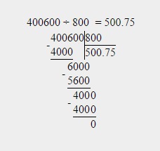 Ответ: 400600:800=500,75