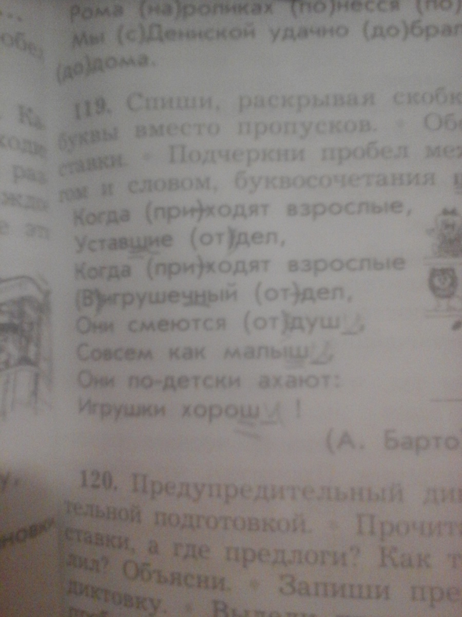 спиши , раскрывая скобки , вставляя буквы вместо пропусков. Обозначение приставки . Подчеркни пробел между предлогом и словом , буквосочетания ши, чн.