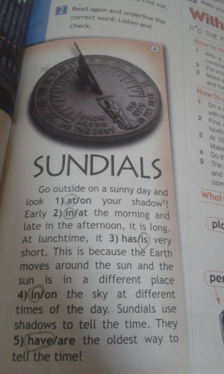 Выйди на улицу в солнечный день и посмотри на свою тень. Рано утром и поздно вечером она длинная. В обеденное время она очень короткая. Это потому, что Земля движется вокруг Солнца, и солнце в разном месте на небе в разное время.