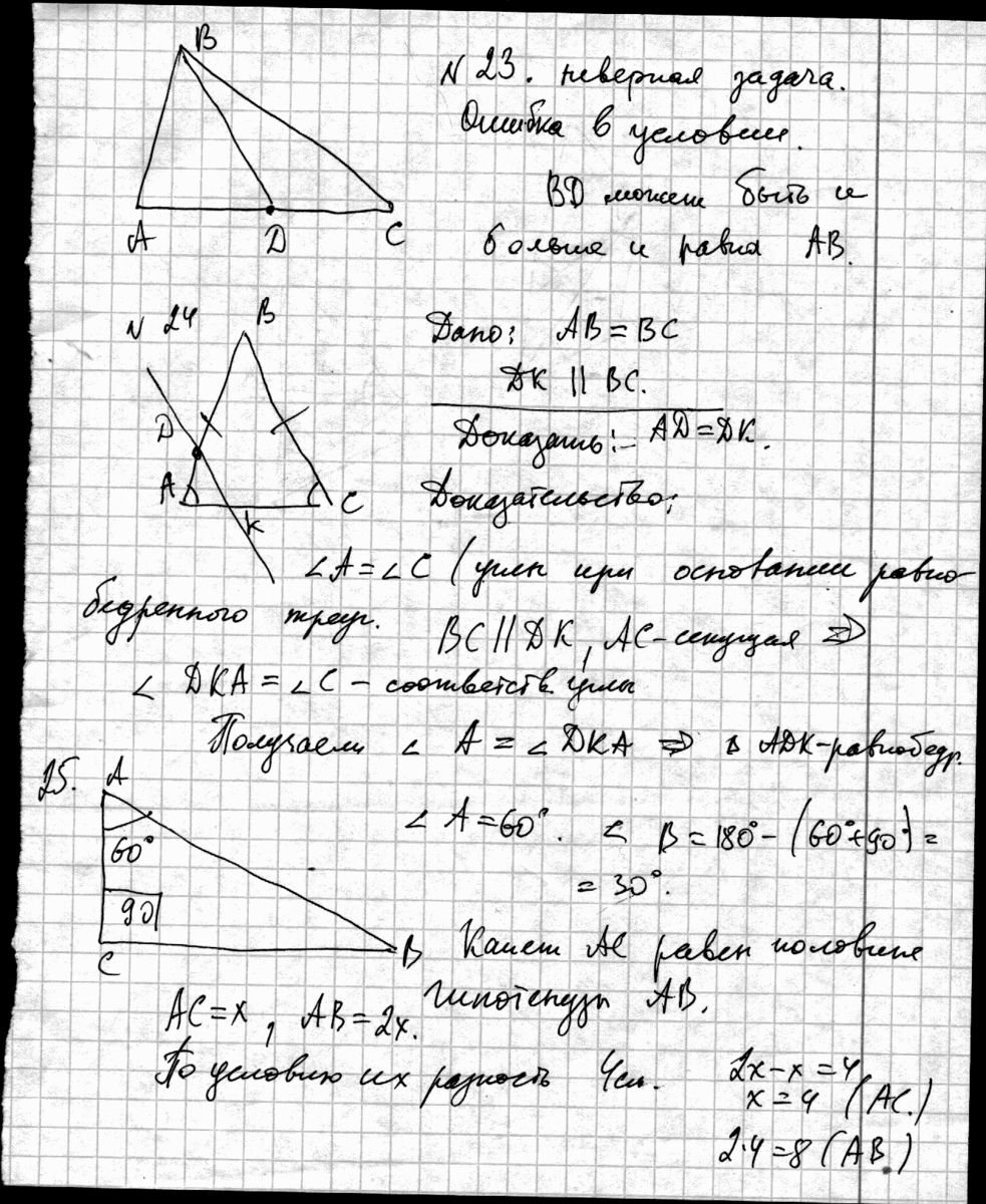 Задача 26 решается аналогично задаче 25, т.к. там тоже получатся углы 90, 60, 30. А в задаче 23 условие дано с ошибкой. Что-то пропущено. Остальные смотри в файлах.