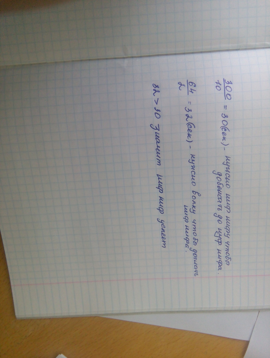 волк погнался за ниф-нифом когда расстояние между ними было 64 м скорость волка 12 мс, а ниф-нифа 10 мс Успеет ли ниф-ниф спрятаться от волка в домике нуф-нуфа ,если ему для этого нужно пробедать 300мс?