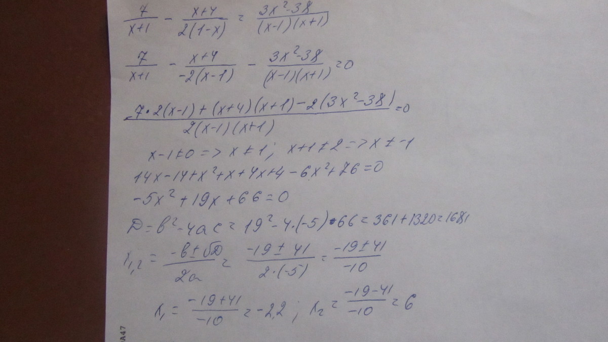 7/х+1-х+4/2-2х=3х2-38/х2-1 решить уравнение. срочно