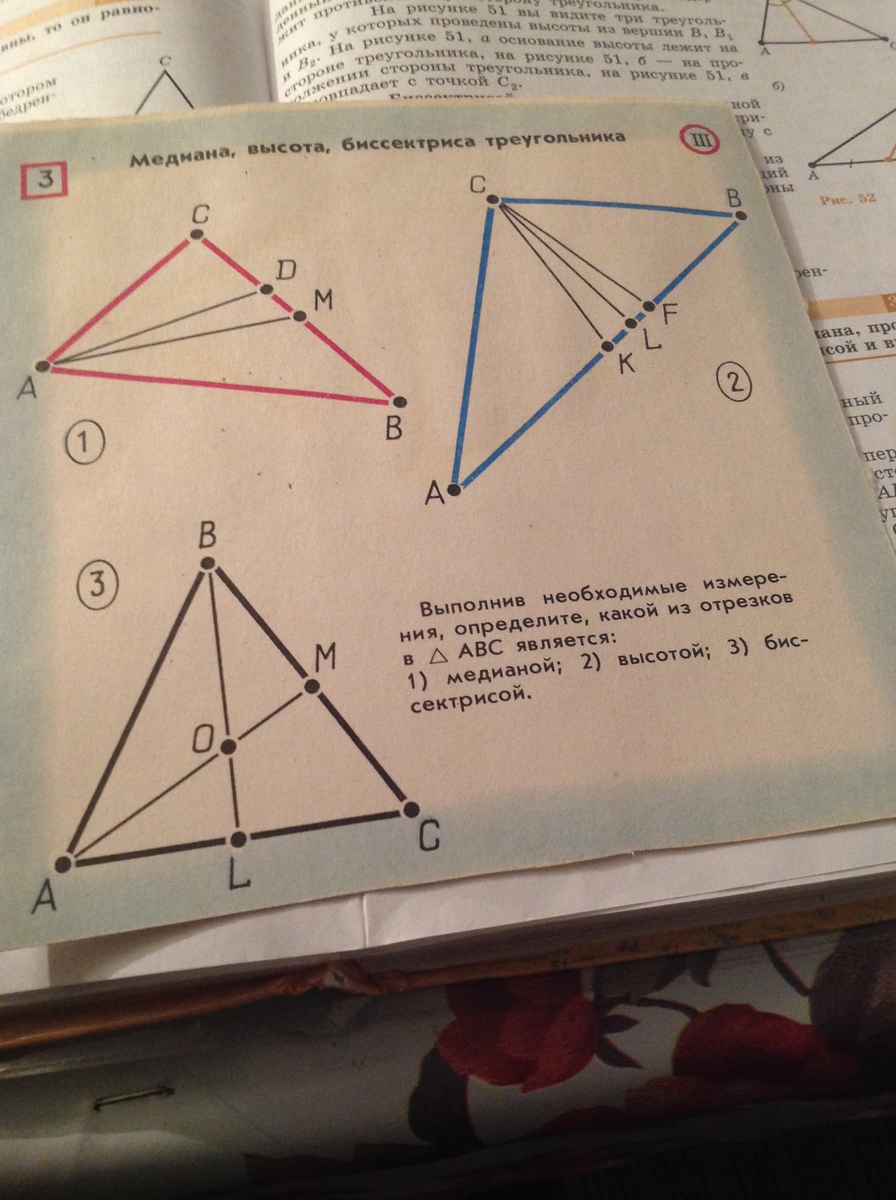 Ну у первого треугольника я так понимаю не надо, второй треугольник вроде как равнобедренный, поэтому CL- биссектриса медиана и высота, А третий тоже вроде бы равнобетренный, поэтому BL- биссектриса медиана и высота, а AM-это должно быть медиана и высота вроде как