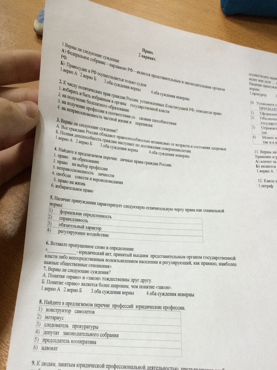 Помогите решить обществознание 7 класса тема право