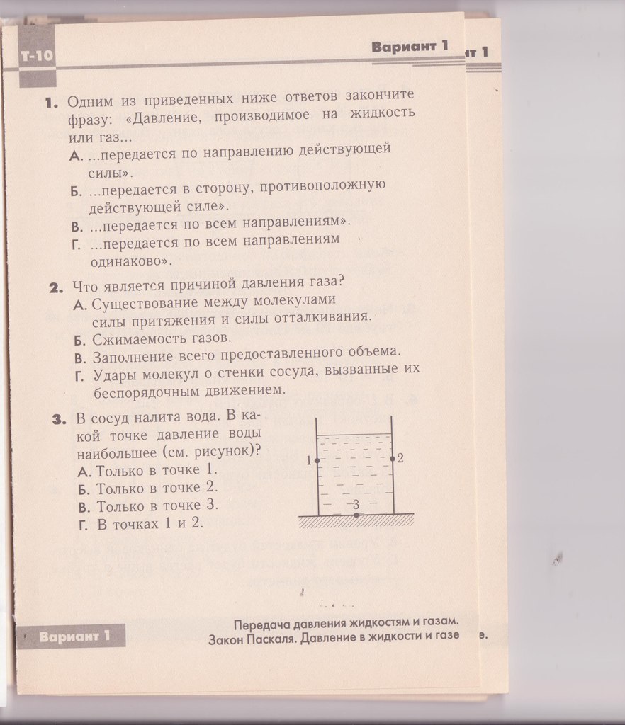 Давление, производимое на жидкость газ передяётся по всем направлениям одинаково. (Закон Паскаля).