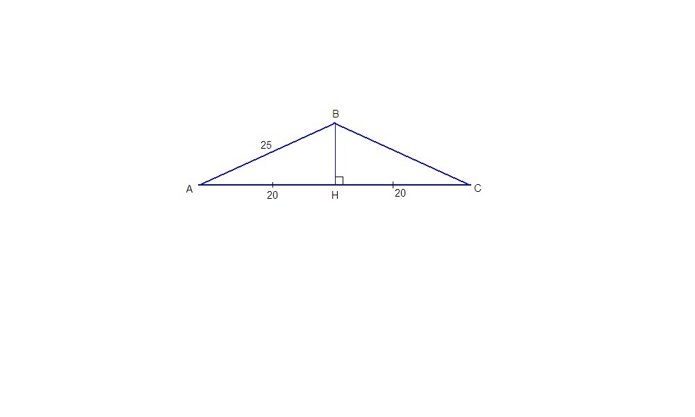 в равнобедренном треугольнике основание равно 40см, а боковая сторона 25 см, найдите тангенс угла при основании