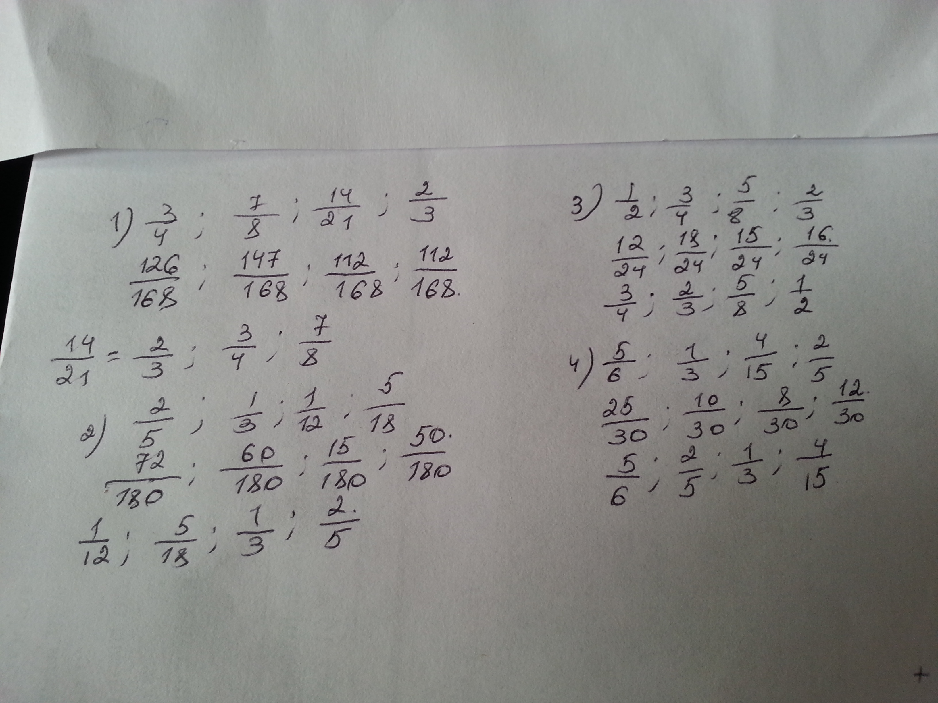 А)3/4,7/8,14/21,2/3. Б)2/5,1/3,1/12,5/18