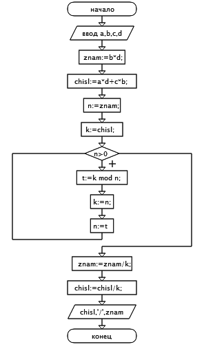 Приведите блок-схему алгоритма сложения двух обыкновенных дробей a/b и c/d.ПОЖАЛУЙСТА,СРОЧНО НАДО