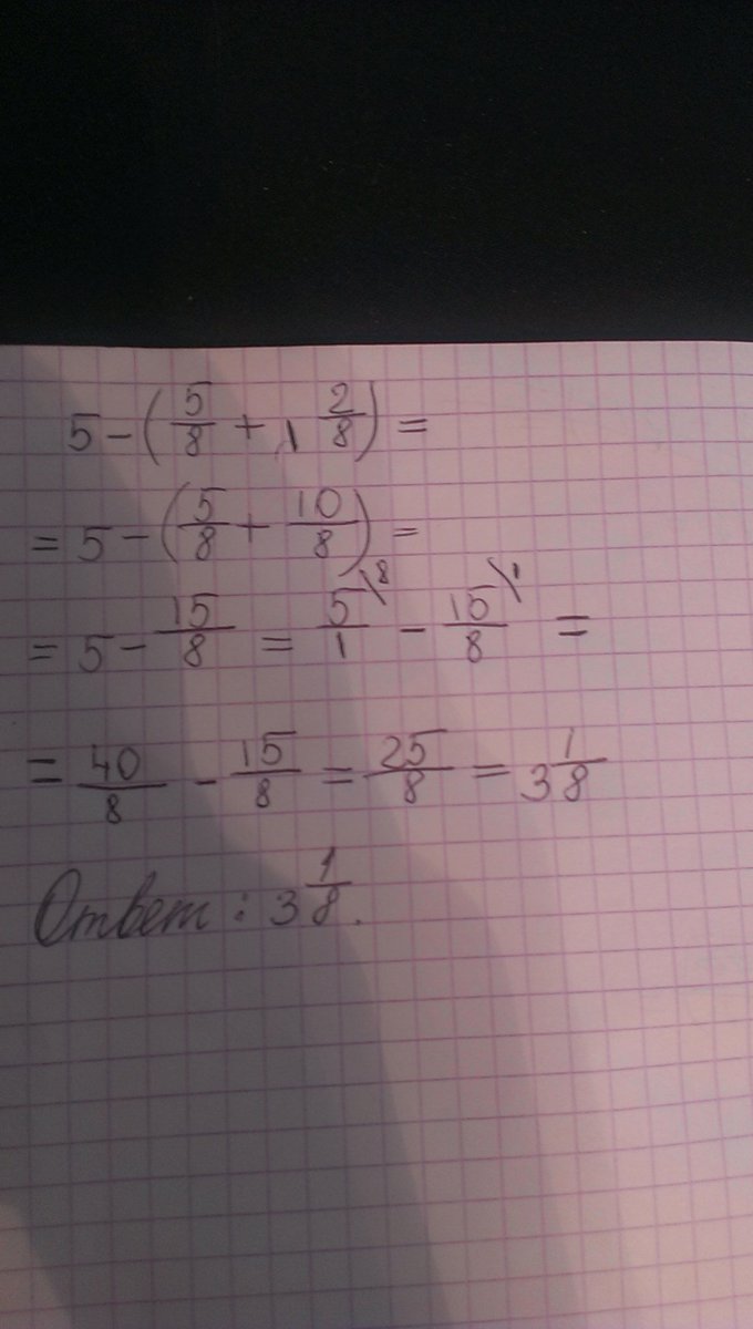 выполнить действия 5-(5/8+1 2/8)