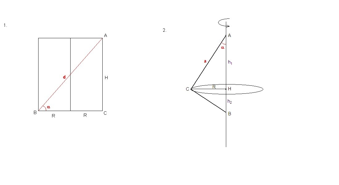 2)Прямоугольный треульник с катетом а и прилежащим углом а вращается вокруг гипотенузы.Найдите обьем фигуры вращения
