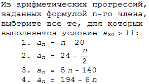 Из арифметических прогрессий , заданных формулой n-ого члена выберите все те для которых выполняется условие а30 > 11 И даны варианты ответа :