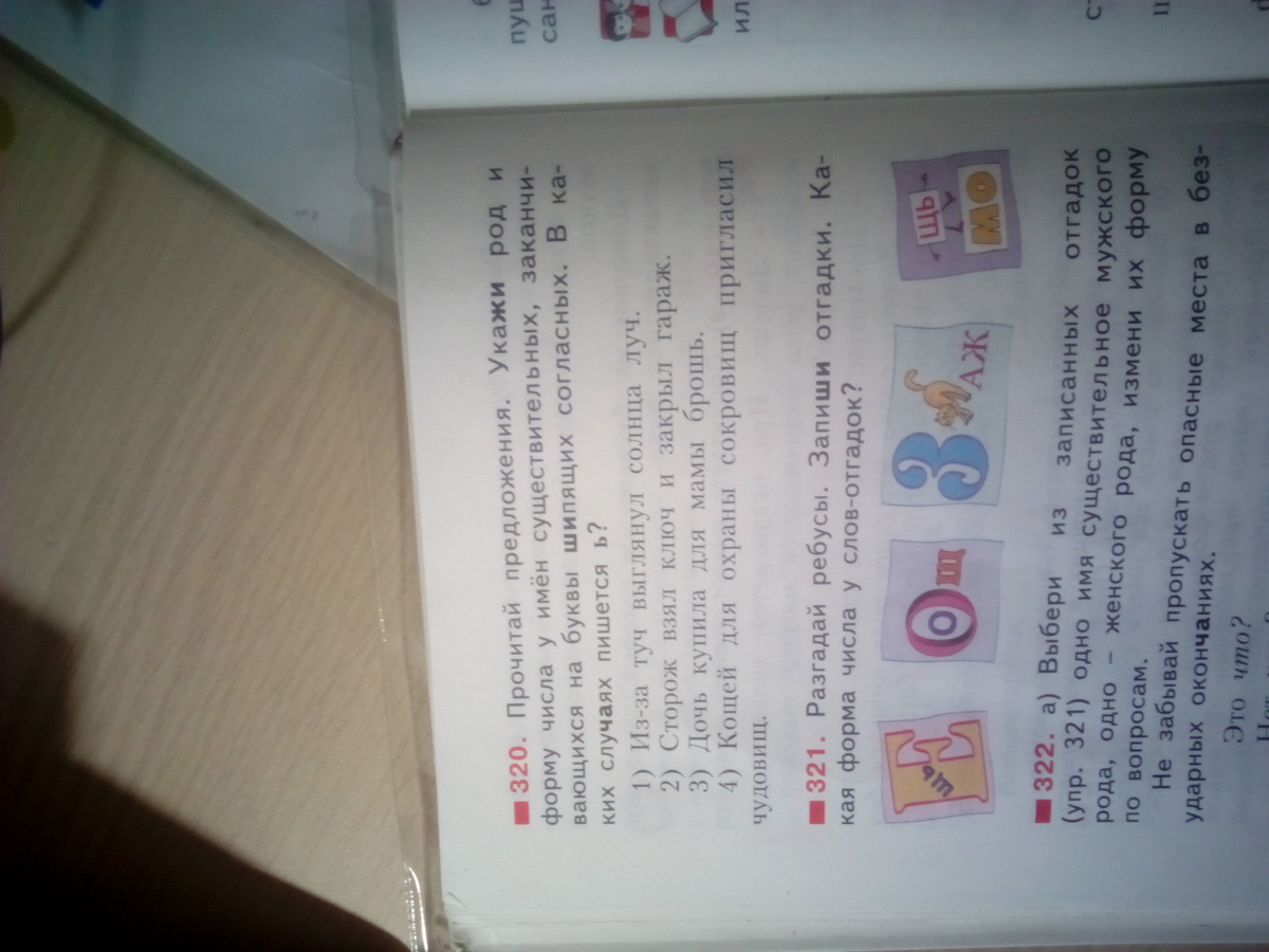 Из-за туч (ж.р., мн.ч.) выглянул солнца луч (м.р.Ед.ч.). Сторож(м.р.,ед.ч.) взял ключ(м.р.,ед.ч.) и закрыл гараж (м.р.,ед.ч.). Дочь (ж.р., ед.ч.) купила для мамы брошь (ж.р.,ед.ч.). Кощей для охраны сокровищ (ср.р., мн.ч.) пригласил чудовищ (ср.р.,мн.ч.).