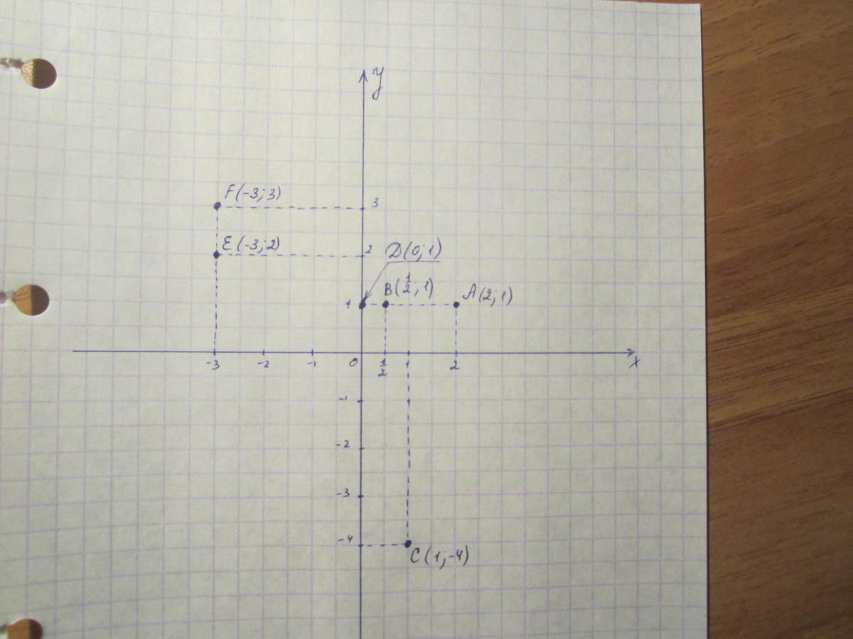 Постройте в декартовой системе координат точки: А (2;1); В (1/2;1); С (1;-4); D (0;1); E (-3;2); F (-3;3)