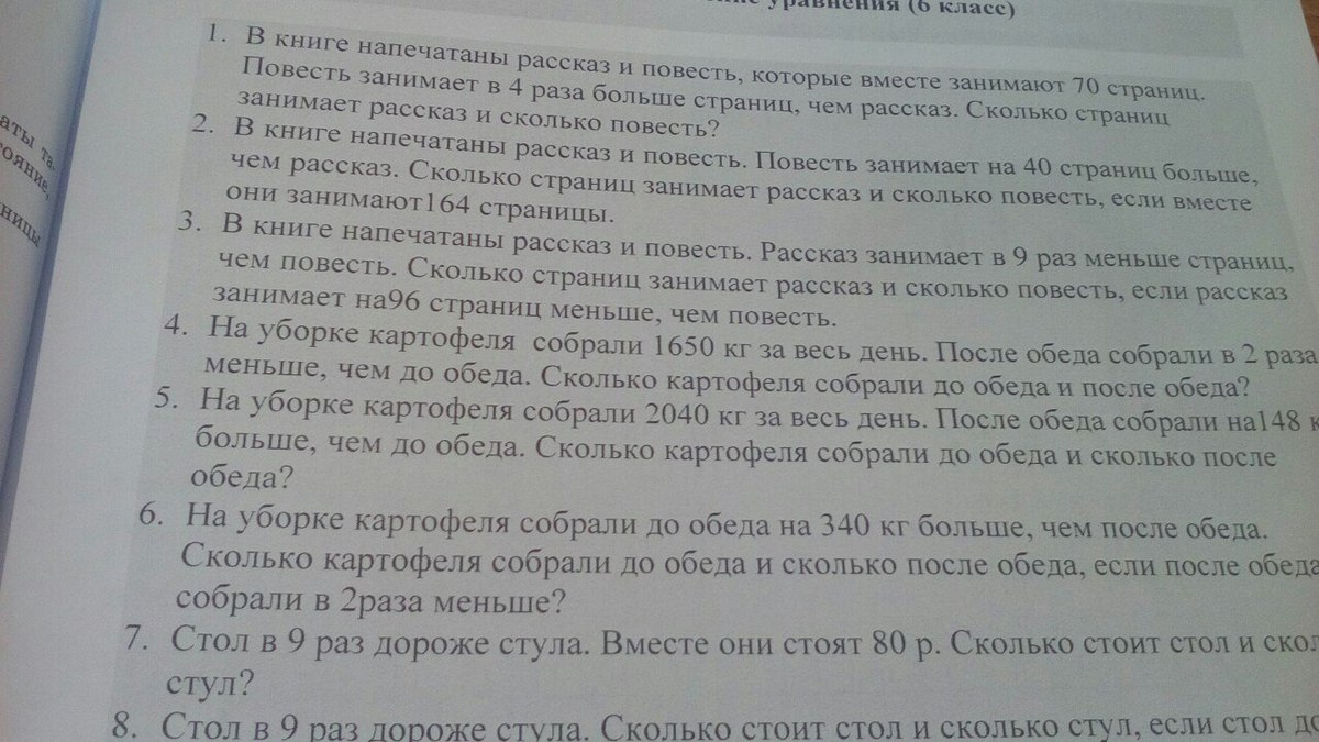 с оформлением "пусть х страниц в рассказе, тогда в повести х/9 страниц или х-96, тогда..."
