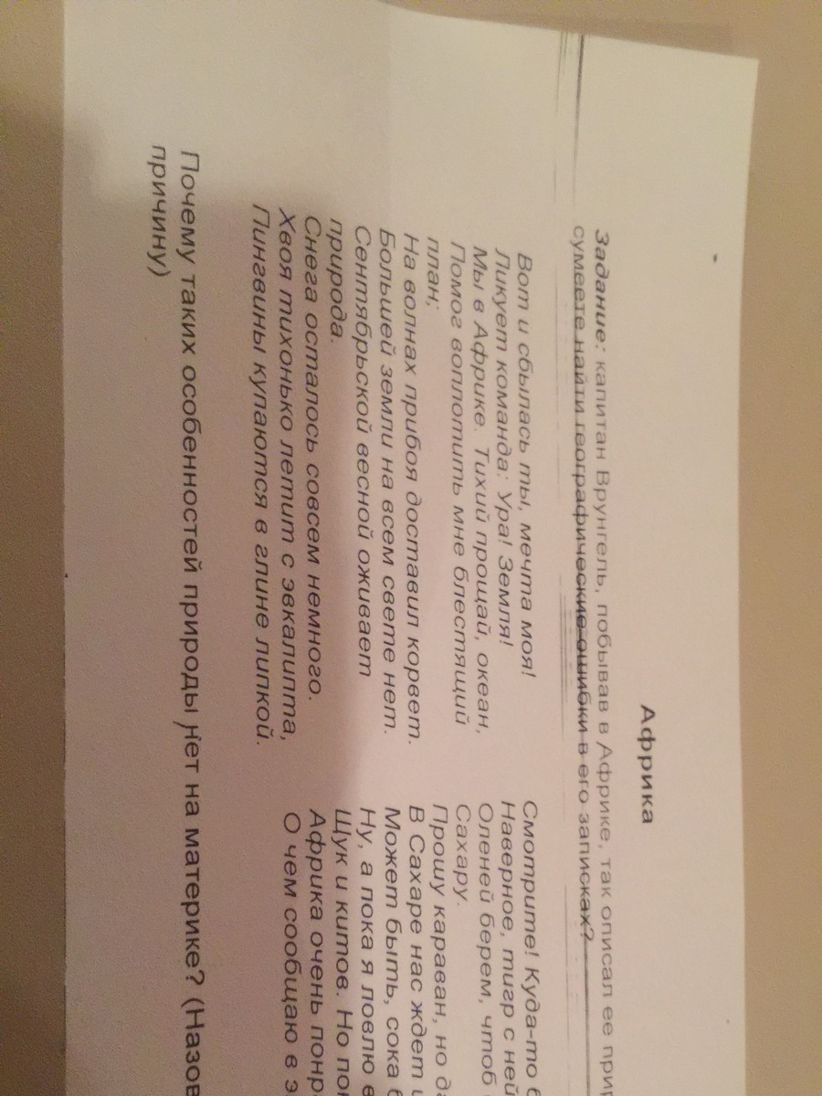 Задание: капитан врунгель, побывав в Африке, так описал её природу. А вы сумеете найти географические ошибки в его записках?
