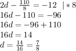 найдите корень уравнения 2d-110/8=-12