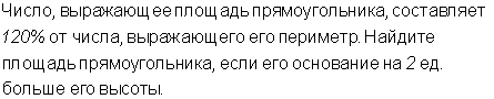 Пусть стороны х и х+2. Тогда периметр равен Р=4х+4, При этом площадь равна П=х*х+2х. Теперь П/Р = 1.2. И найдем от сюда х: х*х+2х=4.8х+4.8; хх-2.8х-4.8 = 0; Д=5.2 - дискриминант. х = 4, х+2 = 6. Т. е. Площадь = 24.