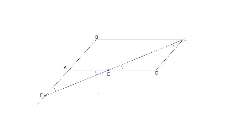 через вершину С параллелограмма проведена прямая, пересекающая сторону AD в точке Е, а продолжение АВ в точке F , Доказать что треугольники ЕСD и FBC подобны