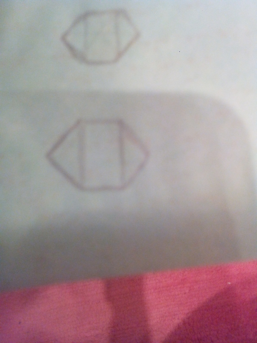 Как провести 2 отрезка в шестиугольнике чтобы получилось 2 треугольника,1 прямоугольник и 2 пятиугольник?