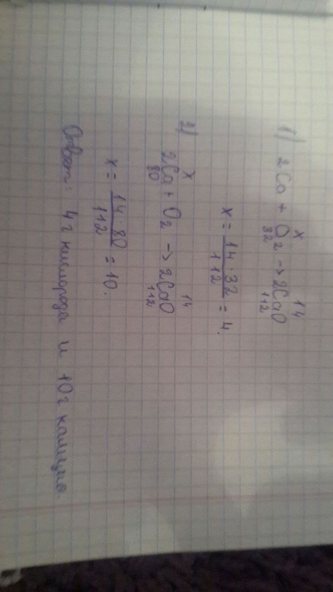сколько граммов кислорода и кальция необходимо зять для получения 14г оксида кальция