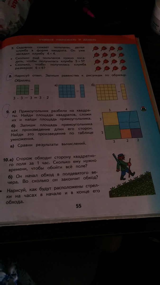 2) 3 * 3 = 9 см² - площадь зелёного квадрата