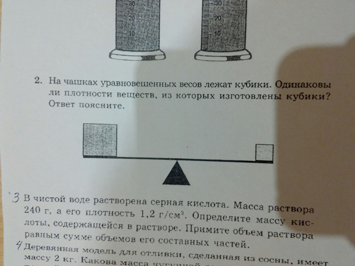 2.p=m/v . Следовательно, чем выше объем, тем меньше плотность.У кубика слева объем больше => меньше плотность. У правого все в точности до и на оборот.