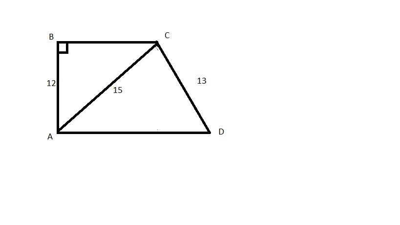 В прямоугольной трапеции боковые стороны 12 см и 13 см, а большая диагональ 15 см. Найдите основания трапеции.