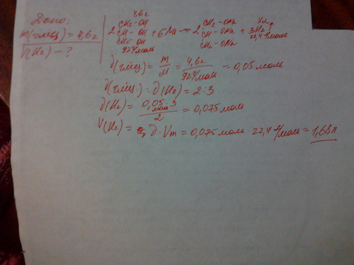 какой объем газа н у выделится при взаимодействии 4,6 г глицерина с избытком натрия
