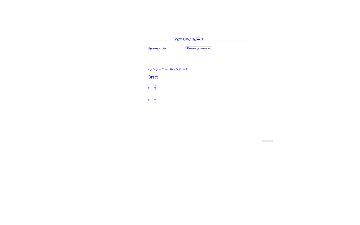 Решите уравнение 2у(9y-6)+5(6-9y)=0