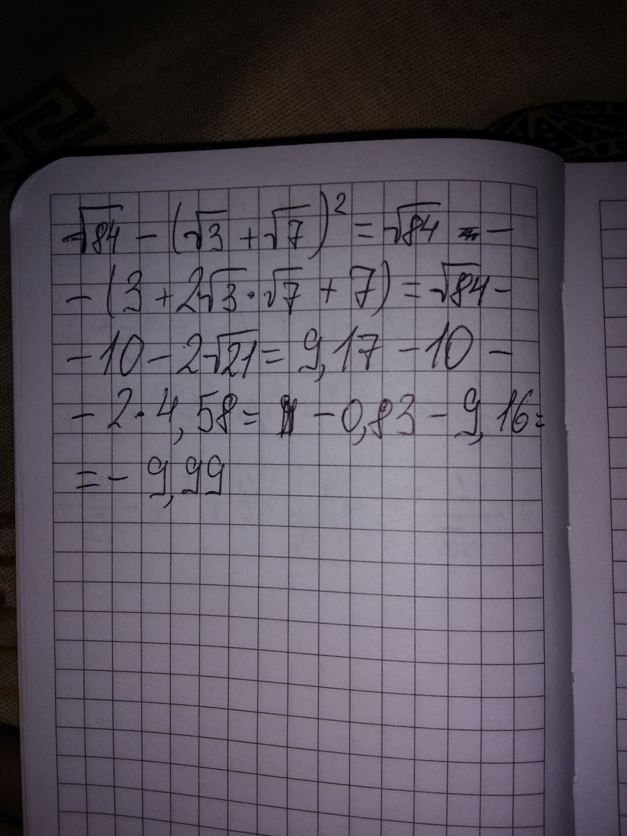 Найдите значение выражения √84-( √3+ √7)^2